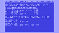 C64 BASIC Boot Maker Version 1.05 Released on October 29, 2025 Copyright (c) 2025 Graham (Francesco Gramignani) Release notes BASIC pointers (VARTAB, ARYTAB and STREND), specified into boot header, no...