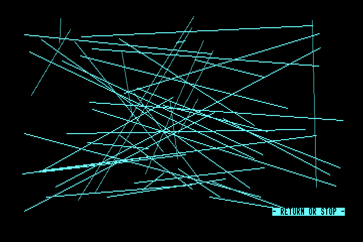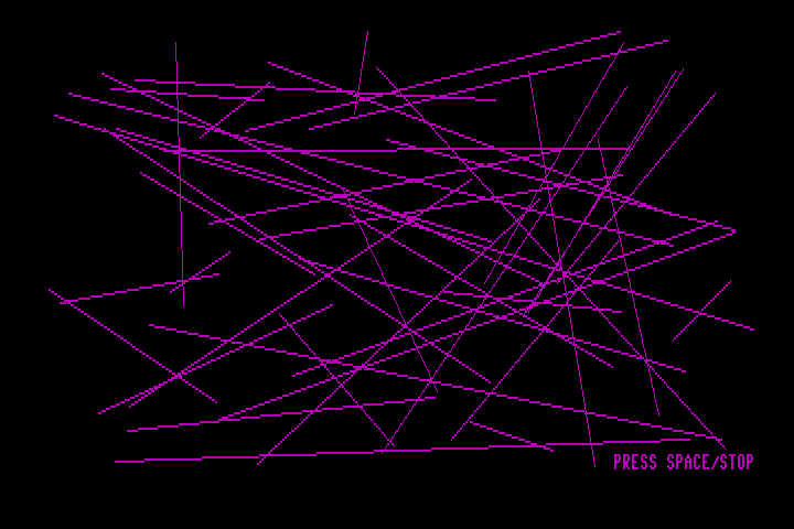 ,1to the commands above, or use SCNCLR (Shortcut: F4), though the latter does not change the current graphic mode.To draw a line, use the DRAW command, which uses the Bresenham algorithm: