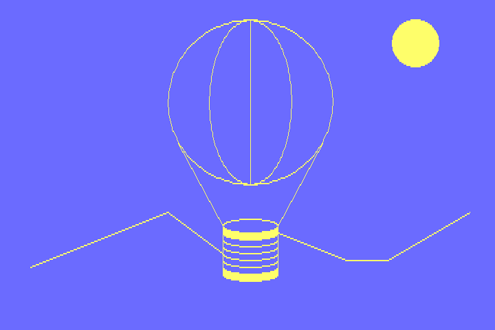 - GRAPHIC 6 VDC bitmap (640 x 200, 2 colori per tutto lo schermo)