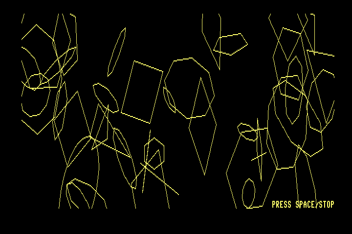 - GRAPHIC 6 VDC bitmap (640 x 200, 2 colors for the entire screen)